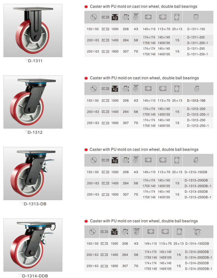 หมายเลขรุ่น:3-1-27 Caster with PU mold on cast iron wheel