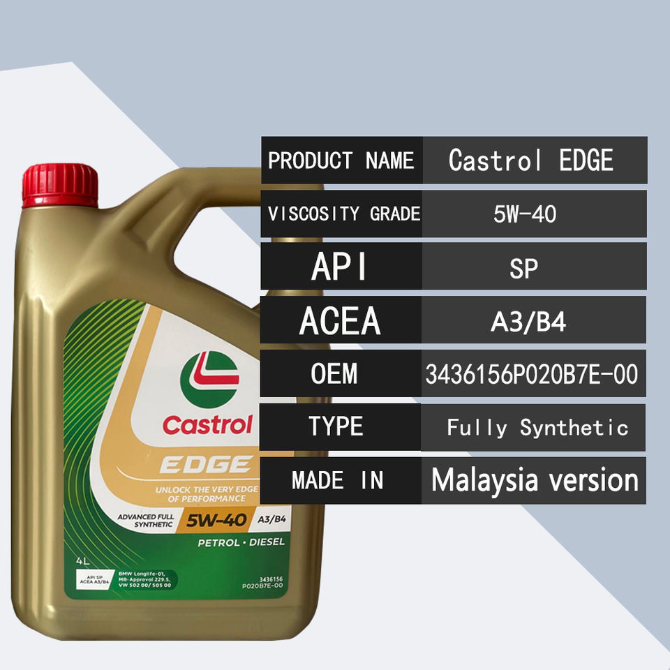 รับประกันคุณภาพ น้ำมันเครื่องสังเคราะห์แท้ SP 5W40 A3/B4 เวอร์ชั่นมาเลเซีย 4 ลิตร 3436156P020B7E-00 สำหรับ Castrol EDGE