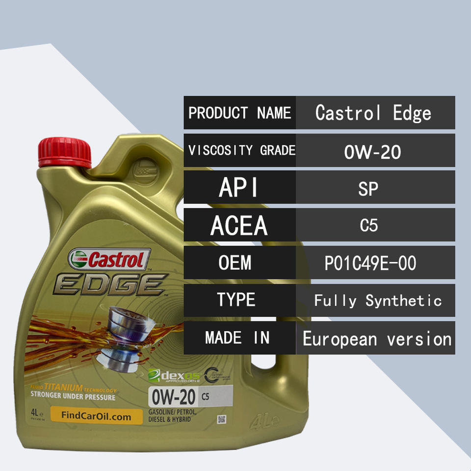 รับประกันคุณภาพ น้ำมันเครื่องสังเคราะห์แท้ 100% สำหรับรถยนต์ SP 0W20 C5 รุ่นยุโรป 4 ลิตร P01C49E-00 สำหรับ Castrol EDGE