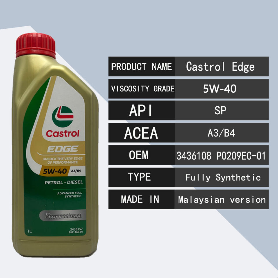 น้ำมันเครื่องสังเคราะห์อย่างสมบูรณ์ SP 5W40 A3/B4รุ่นมาเลเซีย3436157ลิตร PO214AE-00สำหรับ Castrol EDGE