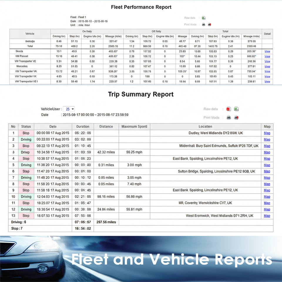 Realtime Tracking, Breadcrumb Trails, Geo-fence, Trip Reportsการรวมกัน
