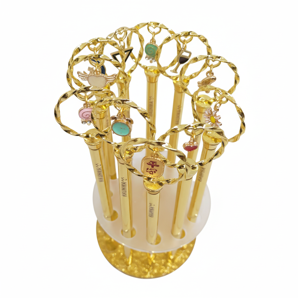 ปากกาลูกลื่นโลหะรับประกันคุณภาพ พร้อมเลเซอร์โลโก้ ตัวเลือกจี้แบบสุ่ม ขายดี ขายส่ง เครื่องเขียนสร้างสรรค์