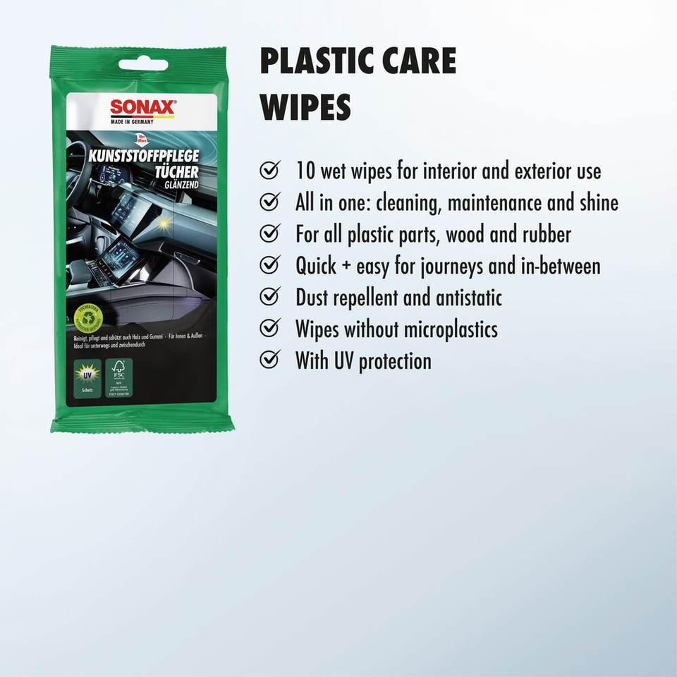 Quality Guaranteed Glossy Plastic Care Wipes 10 Pieces For A Quick Shine On Interior Plastic Surfaces