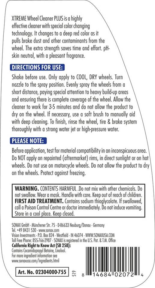 น้ำยาทำความสะอาดล้อ Xtreme บวก750มล. สำหรับการดูแลขอบล้อแบบมืออาชีพและกำจัดรอยเปื้อน