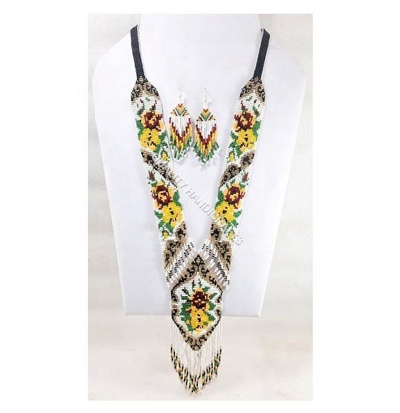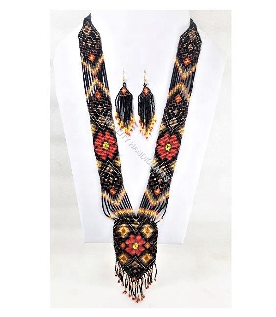 Quality Handicrafts Newest Handmade Fashion Glass Seed Beads Statement Necklace With Earring Jewelry Set Women Choker Necklaces