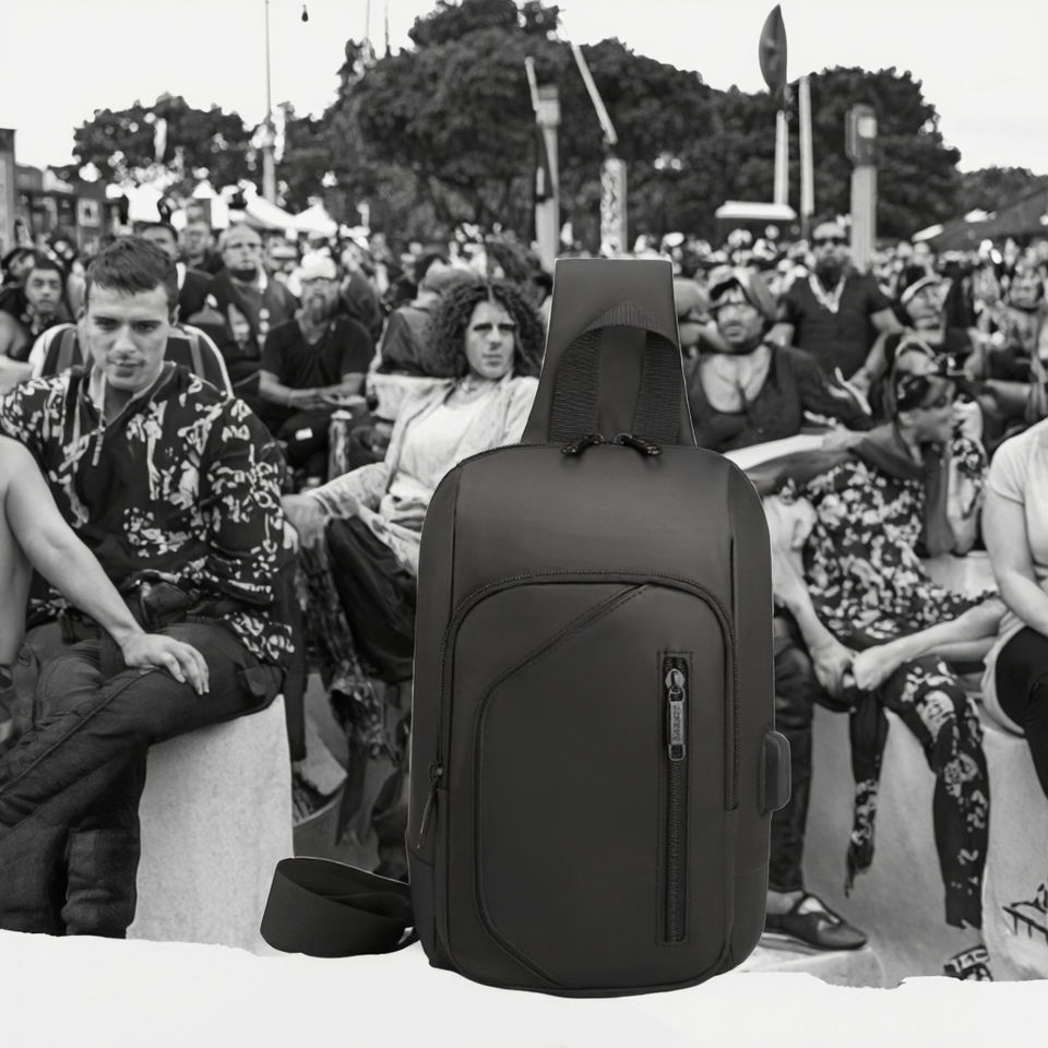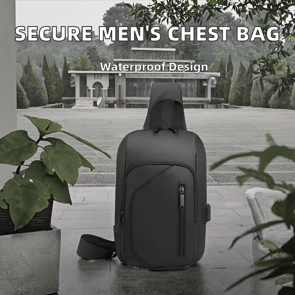 กระเป๋าคาดอกกันน้ำสำหรับผู้ชายคุณภาพดี พร้อมรหัสล็อค สายสะพายไหล่เดียว สีดำ มีช่องเสียบ USB ชาร์จไฟ ป้องกันการโจรกรรม เหมาะสำหรับขี่มอเตอร์ไซค์