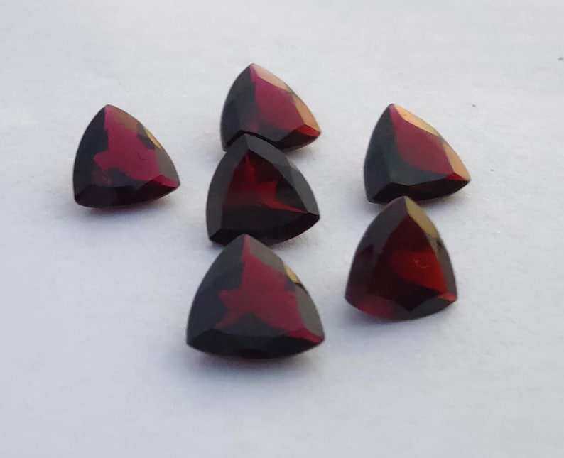 พลอยโกเมนสีแดงธรรมชาติคุณภาพสูง รูปทรงทริลเลียน เจียระไนแบบเหลี่ยม ขนาดมาตรฐาน ขายส่งสำหรับทำเครื่องประดับ