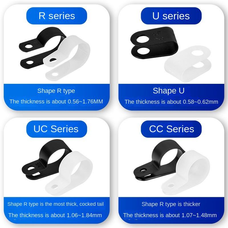 ตัวยึดลวดคลิปยึดสกรูพลาสติกไนลอนชนิด R สำหรับอุปกรณ์จ่ายพลังงาน