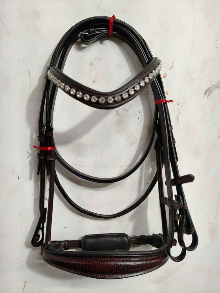 บังเหียนหนังแท้ บุนวม พร้อมสายบังเหียน ประดับด้วยหินสวารอฟสกี้