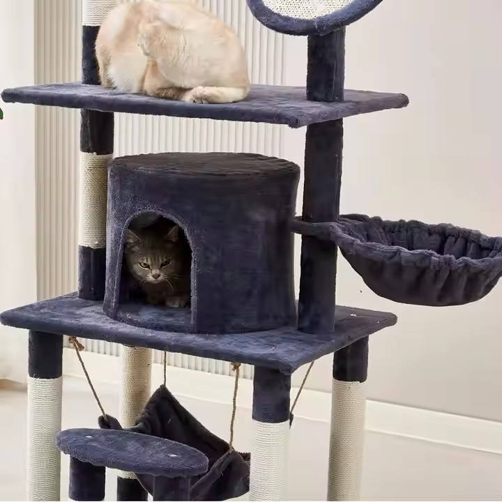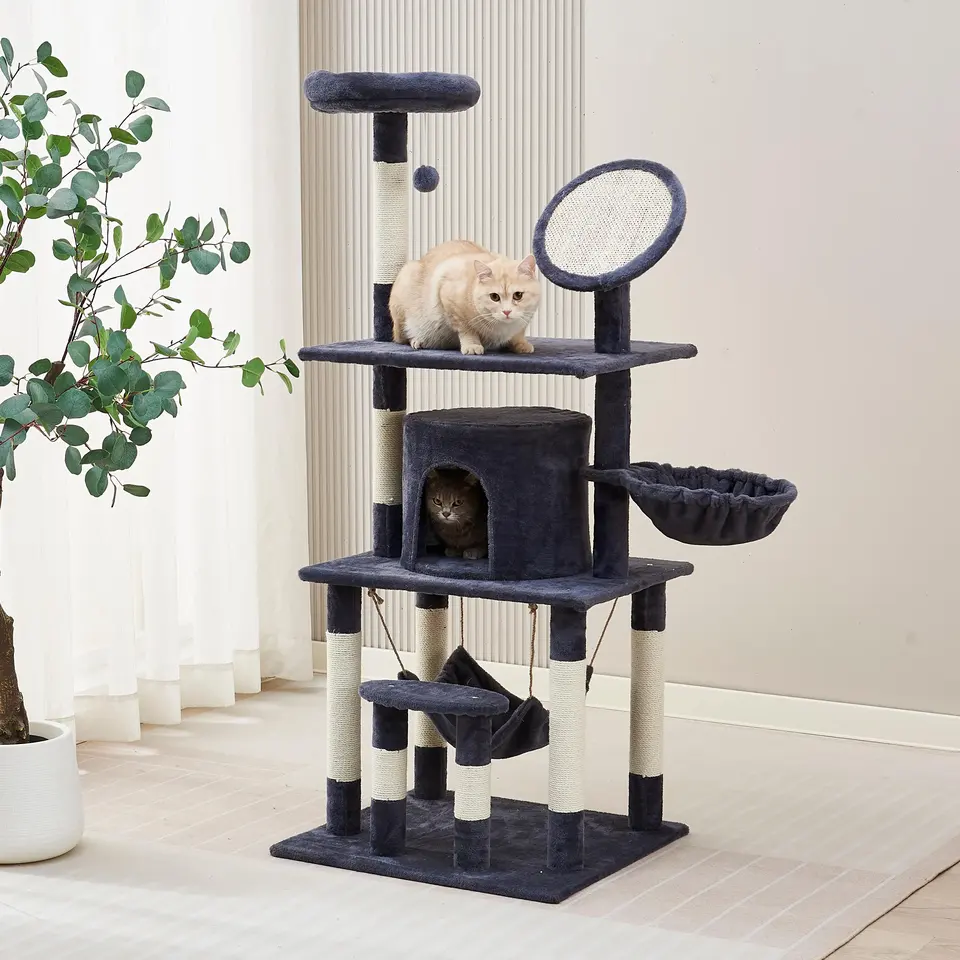 ไม้ขีดข่วนแมวแบบอินเทอร์แอคทีฟวัสดุทำจากไม้ขนสัตว์กำมะหยี่สำหรับแมวขนาดใหญ่ออกแบบตามสมัยนิยม