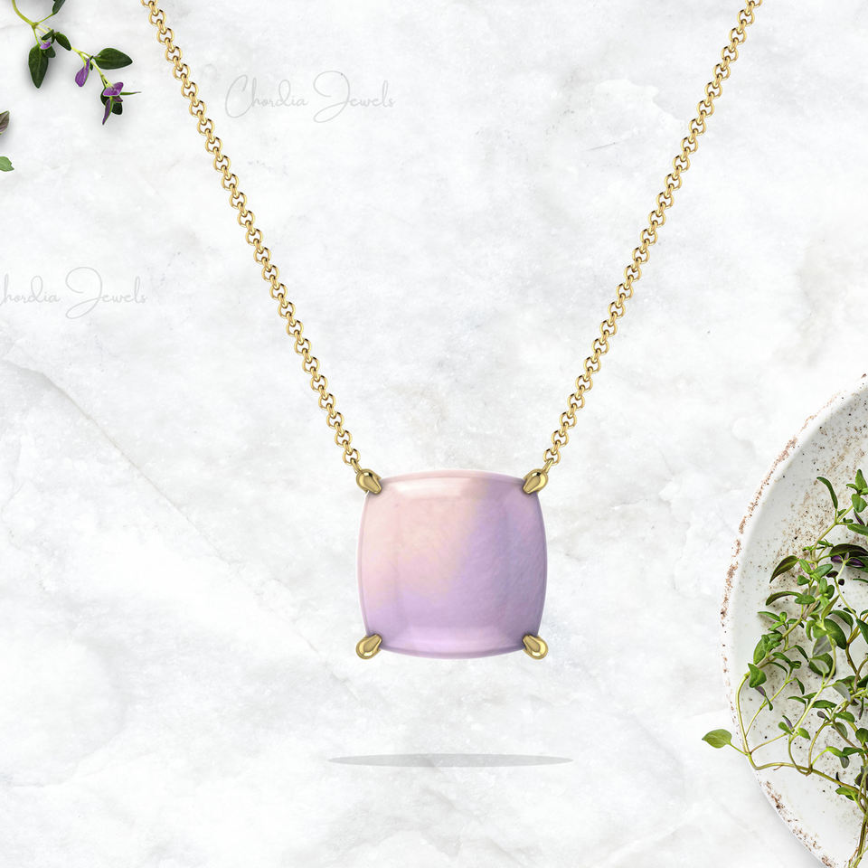 Quality Wholesale Supplier 1.65 CT Cushion Cabochon Rose Quartz Gemstone Necklace 14k Solid Gold Spring Ring Closure Necklace