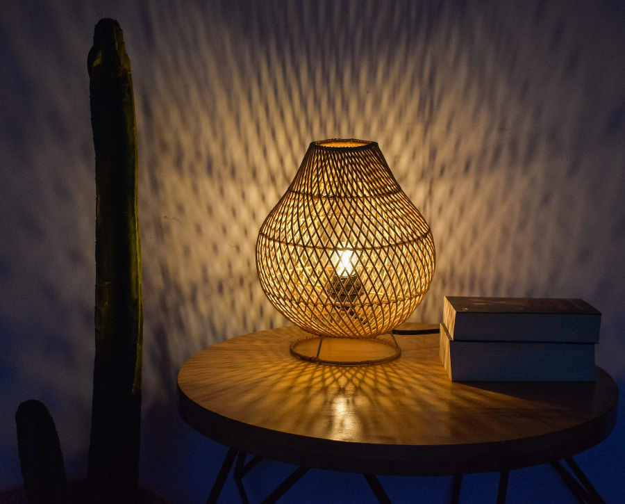 ชื่อผลิตภัณฑ์:โคมไฟตั้งโต๊ะหวายลายดอกตูม
