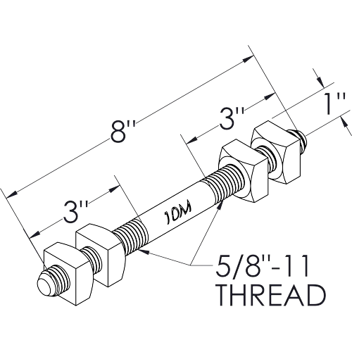 ความยาวสลักเกลียว: 8"