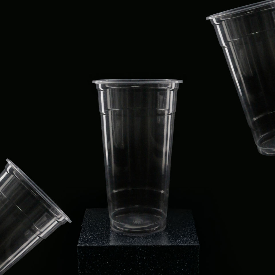 Quang Quan ถ้วยพลาสติกใสแบบใช้แล้วทิ้งขนาด95มม. พร้อมฝาขนาด16 20 24ออนซ์สำหรับเสิร์ฟเครื่องดื่มร้อน/เย็น