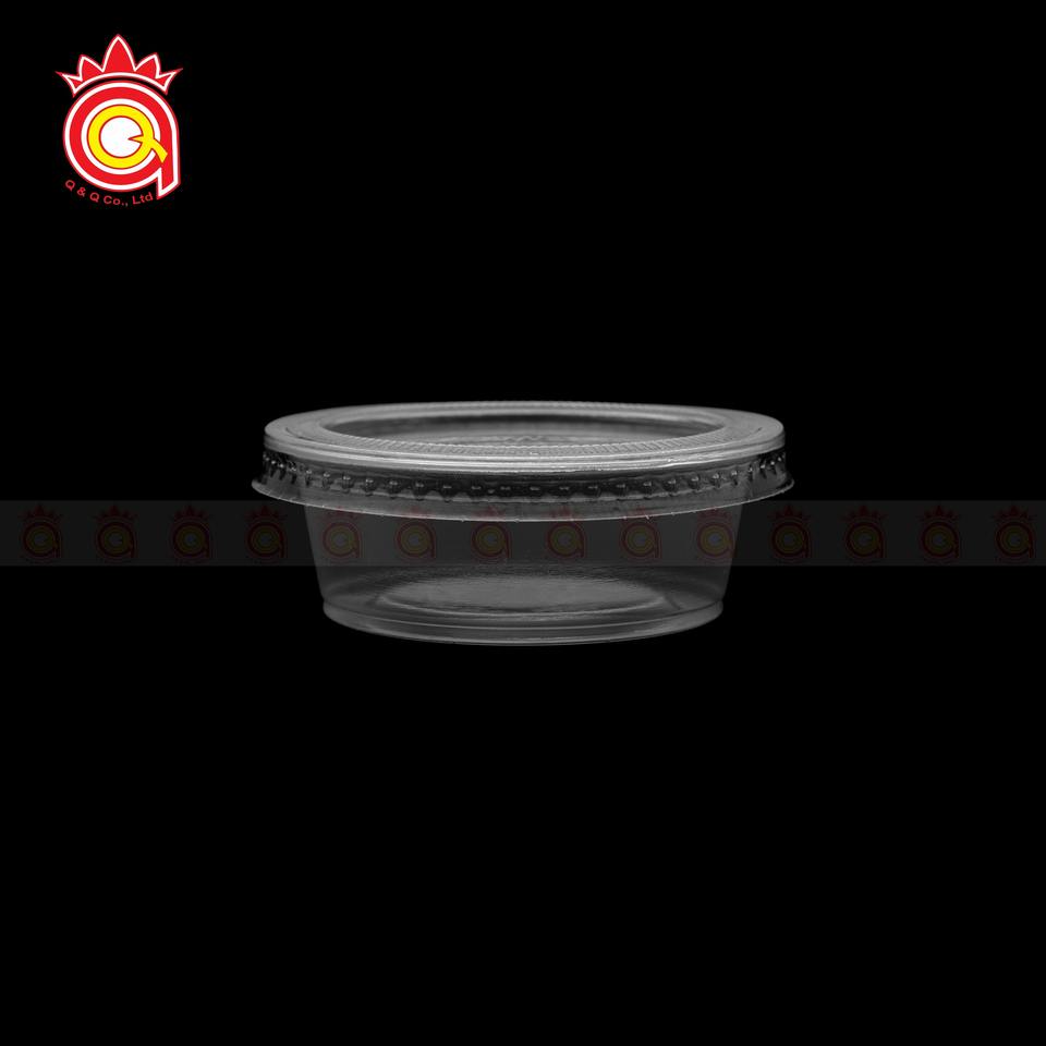 Quang Quan ถ้วยซอสพลาสติกแบบใช้แล้วทิ้งขนาด2ออนซ์พร้อมฝาปิดพุดดิ้งถ้วยชอตสำหรับเครื่องปรุงรส