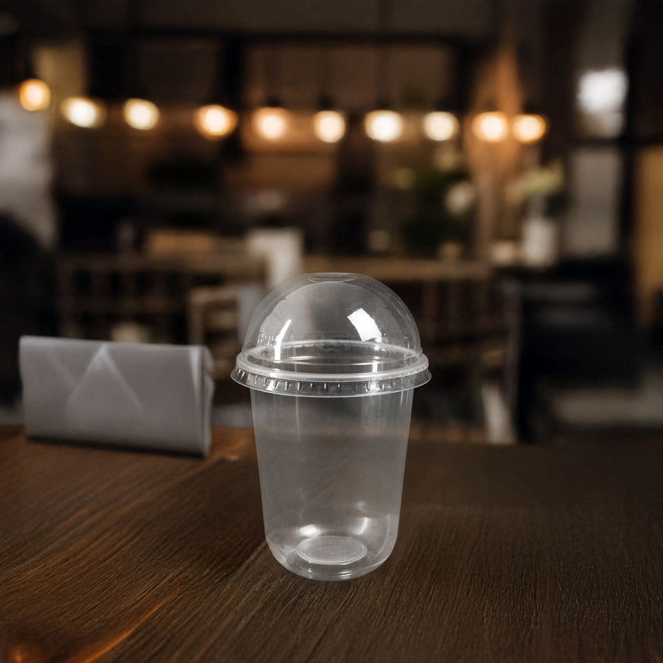 ถ้วยพลาสติกใสแบบใช้แล้วทิ้งขนาด12ออนซ์24ออนซ์95มม. ที่ใส่เครื่องดื่มติดผนังแบบเดี่ยวสำหรับกาแฟชานมเย็น/ร้อน