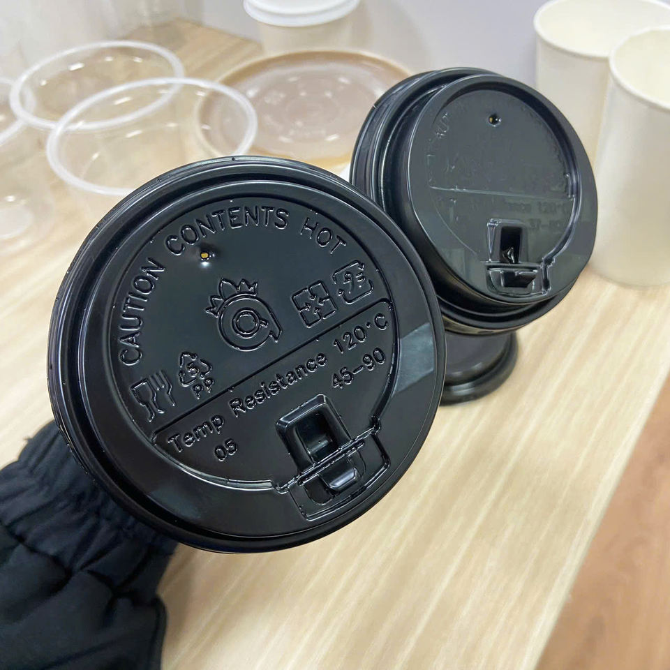 ฝาพลาสติก PP คุณภาพสูงแบบใช้แล้วทิ้ง เป็นมิตรกับสิ่งแวดล้อม ยี่ห้อ Quang Quan สำหรับแก้วกาแฟกระดาษ แก้วไอศกรีม แก้วขนมหวาน และแก้วชานมไข่มุก