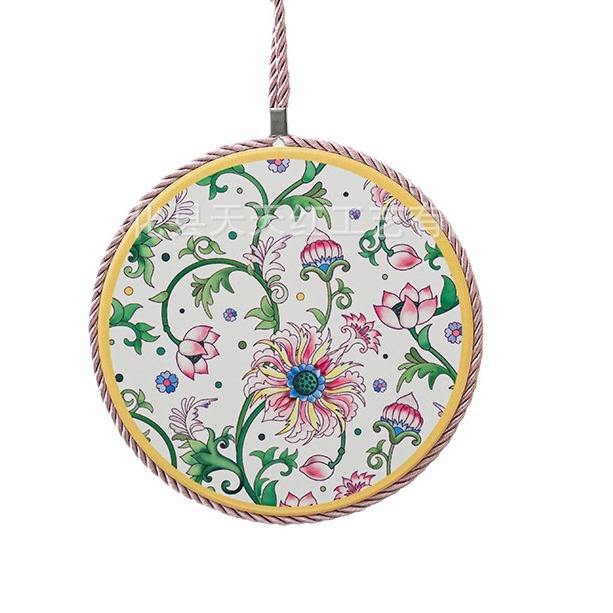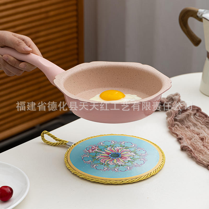 แผ่นรองจานเซรามิกทรงกลมลายดอกไม้จากเมืองเฉวียนโจว กันลื่น ทนความร้อน สำหรับวางชามและแก้ว