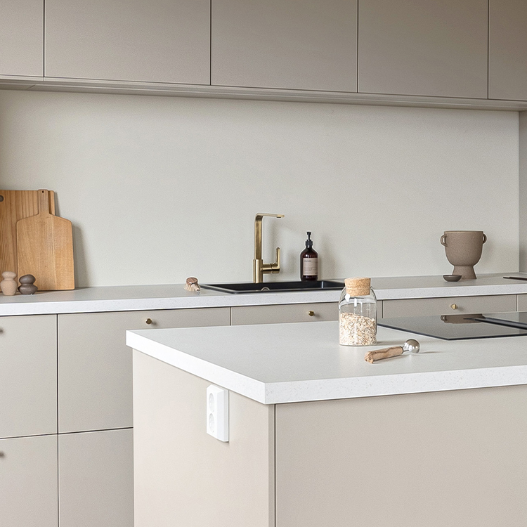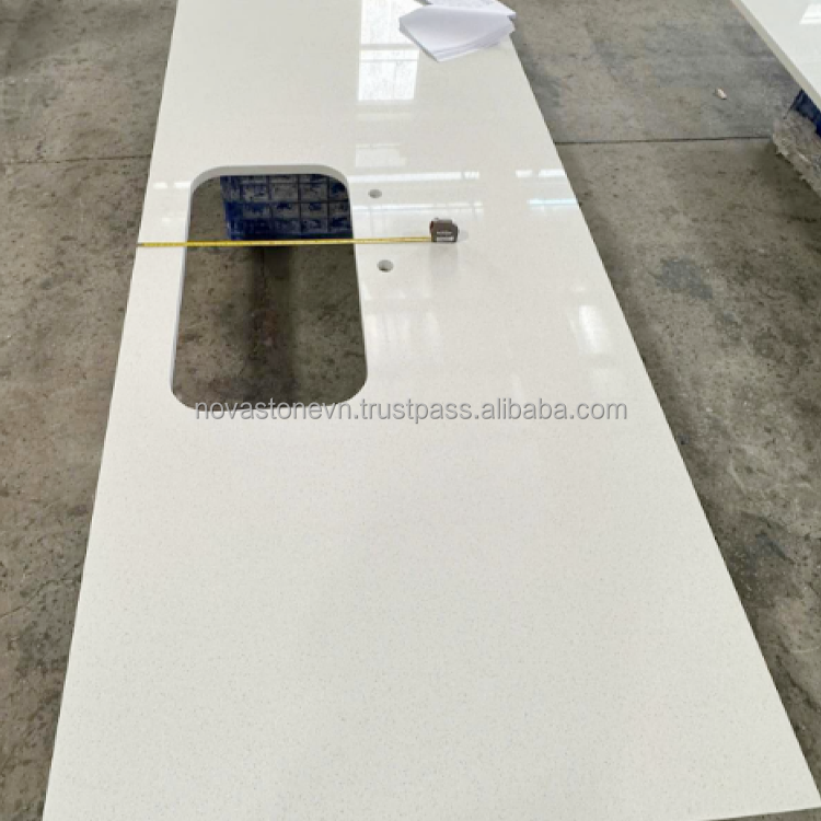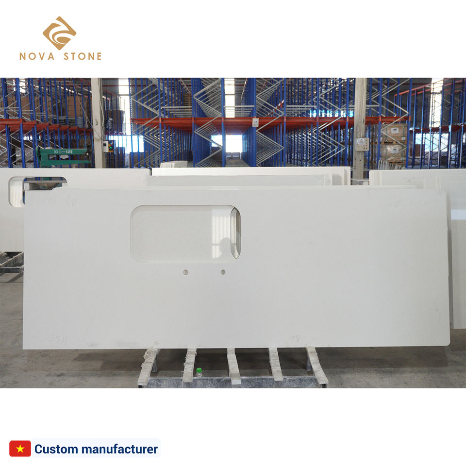เคาน์เตอร์ด้านบนของเกาะหินควอทซ์หินเทียมแผ่นอนุภาคอพาร์ทเมนต์ผิวเรียบป้องกันการรั่วไหลที่งดงาม