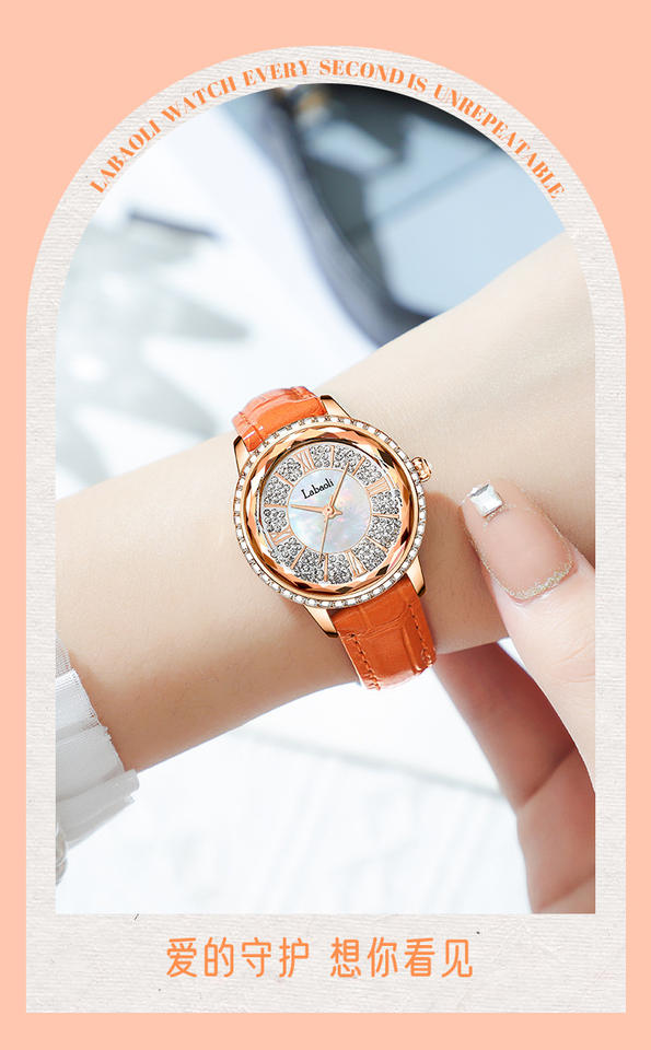 นาฬิกาควอตซ์ประดับเพชรและเปลือกหอยเป๋าฮื้อสำหรับผู้หญิง