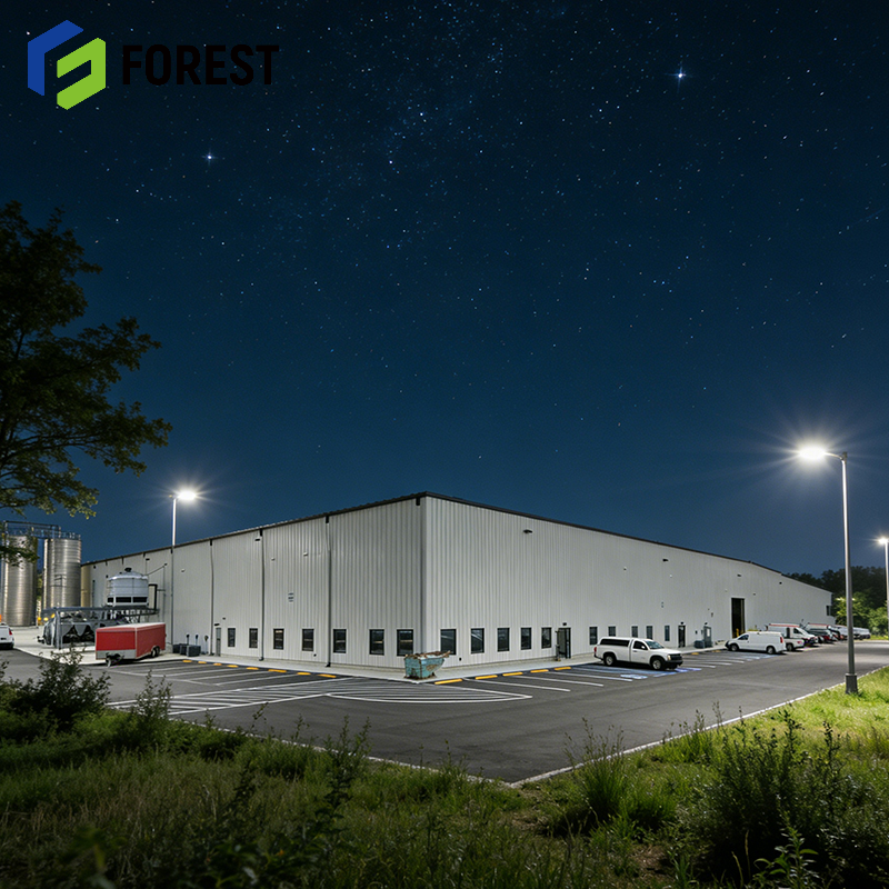 โกดังเก็บสินค้าสำเร็จรูปโครงสร้างเหล็กแบบต่อประกอบด้วยคานไอบีม ทนทานต่อการกัดกร่อน ผลิตที่ควิเบก เหมาะสำหรับการจัดส่ง