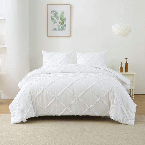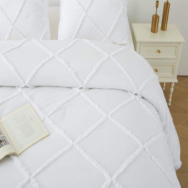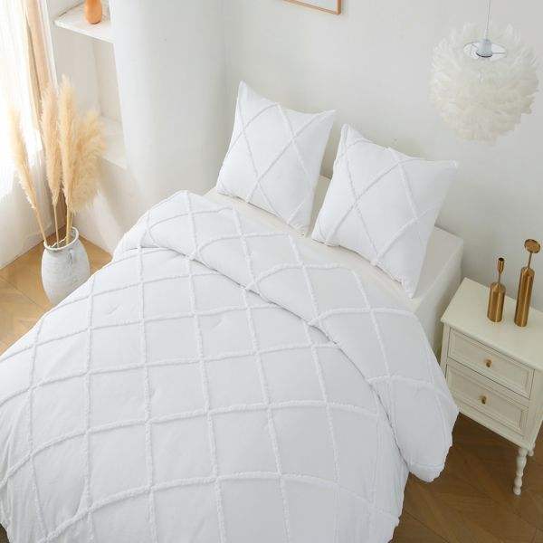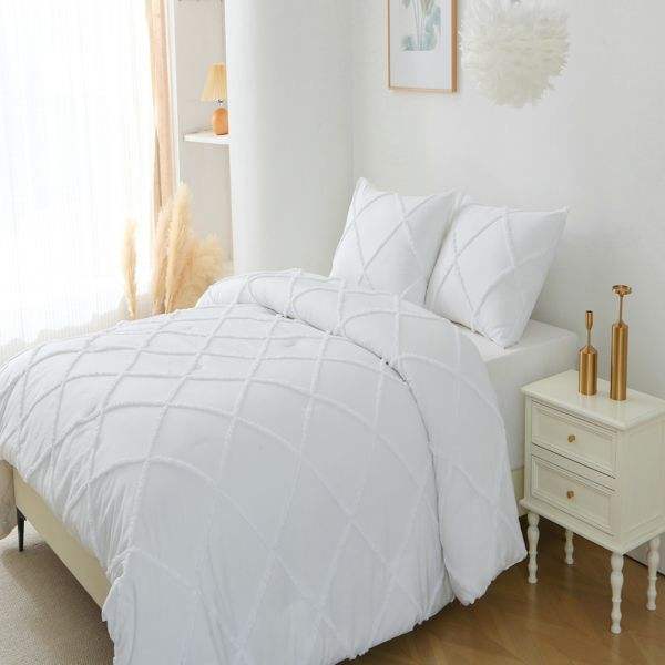 ชุดเครื่องนอนควีนโบโฮแบบทัฟท์ 3 ชิ้น พร้อมผ้านวมใยสังเคราะห์และปลอกหมอน 2 ใบ สีขาว