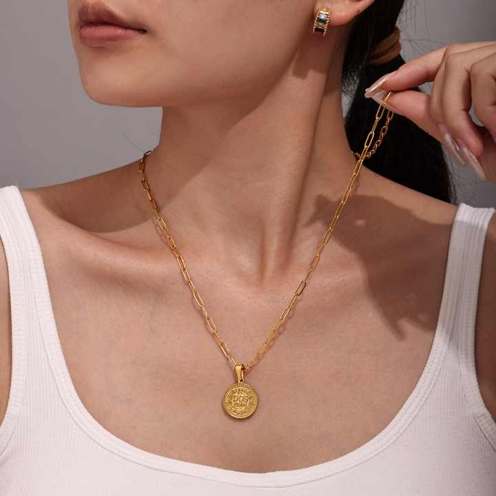 สร้อยคอรูปพระราชินีเอลิซาเบธแบบสองชั้น สแตนเลสชุบทอง ดีไซน์ทันสมัย หรูหราเบาๆ สำหรับผู้หญิง ป้องกันการหมองคล้ำ