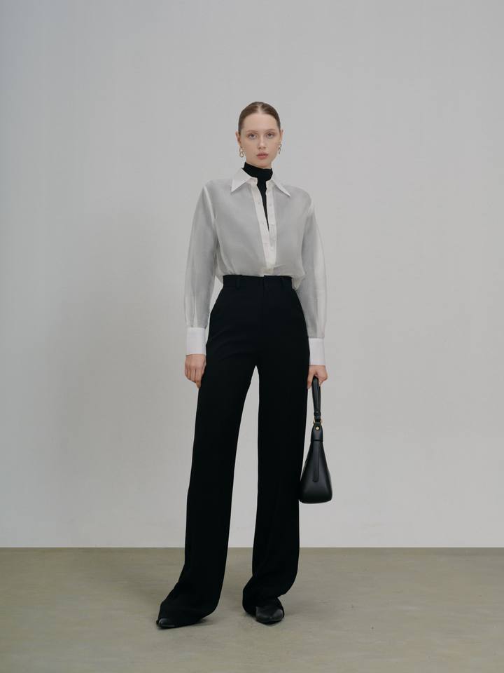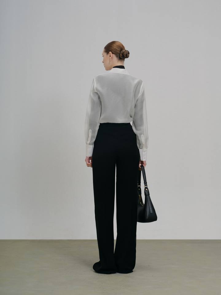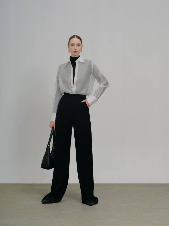 กางเกงขายาวทรงตรงสไตล์มินิมอลสำหรับผู้หญิง แบรนด์ Queen High Fashion ผ้าไหม บริการ ODM ปรับแต่งได้