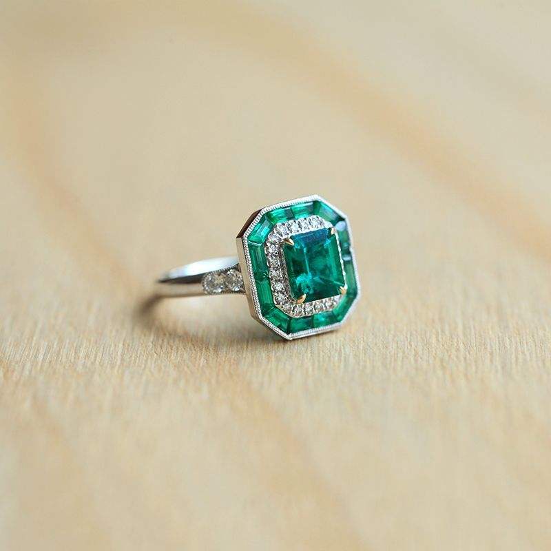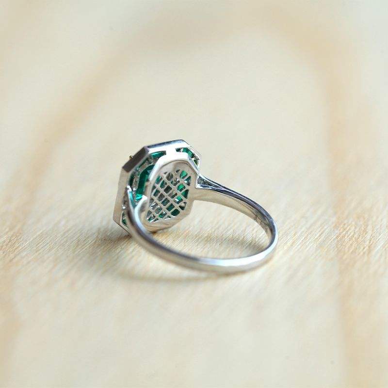 แหวนเพชรมรกต zambian แรงบันดาลใจจากราชินีแหวนเงิน925โซลิแทร์แหวนอาร์ตเดคโคสีมรกตวินเทจแหวนของขวัญแต่งงานมรกตทำด้วยมือ