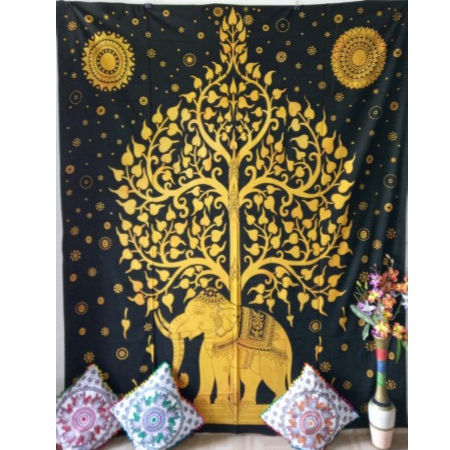 พรมแขวนผนังลายต้นไม้และช้างขนาดควีนไซส์ผ้าคอตตอนพิมพ์ลายสัตว์มันดาลาตกแต่งบ้านสไตล์ชนเผ่าที่ยอดเยี่ยมโดยผู้ฝากขายชาวอินเดีย