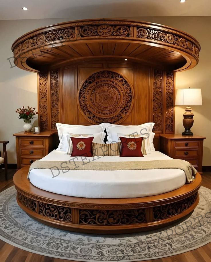 ชื่อผลิตภัณฑ์:ชุดห้องนอนทรงกลมขนาดควีนไซส์ทำจากไม้สักอินเดีย