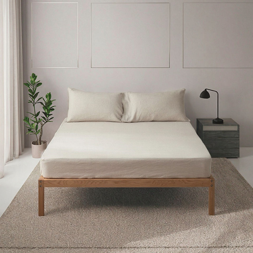 ชุดเครื่องนอนผ้าไหม/ผ้าลินินขนาดควีนไซส์ สไตล์โมเดิร์นฟาร์มเฮาส์ 4 ชิ้น 300 เส้นด้าย ทอแบบ Stone Washed กระเป๋าผ้าปูที่นอนแบบลึก เหมาะสำหรับโรงพยาบาล