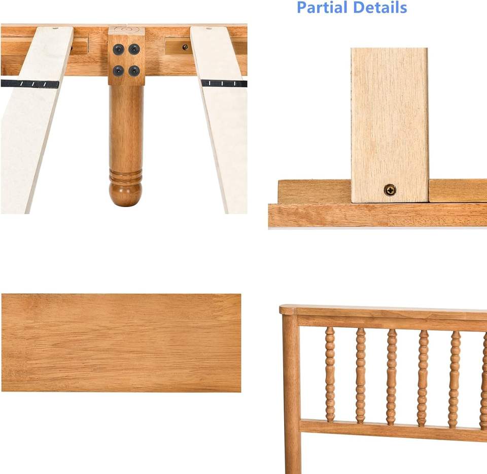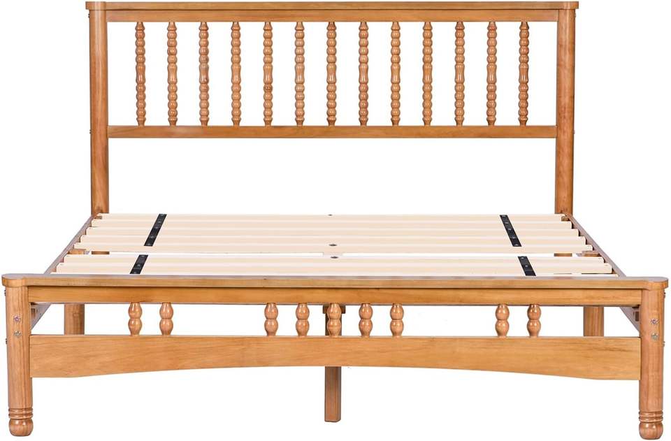เตียงขนาดควีนส์โครงไม้โอ๊คแบบชนบทประกอบง่ายสไตล์ดั้งเดิมเตียงไม้ไม่จำเป็นต้องใช้กล่องสปริง