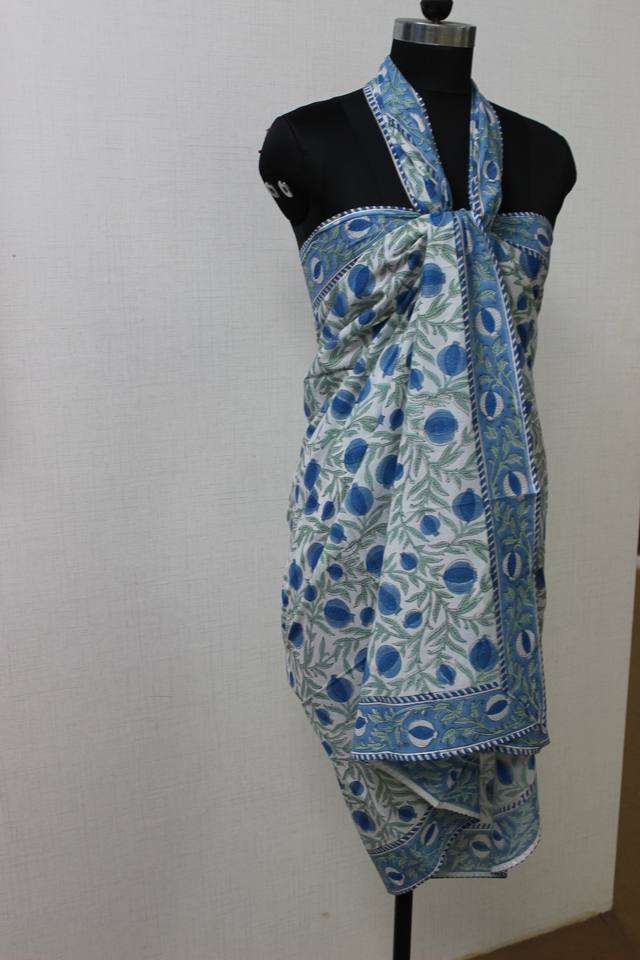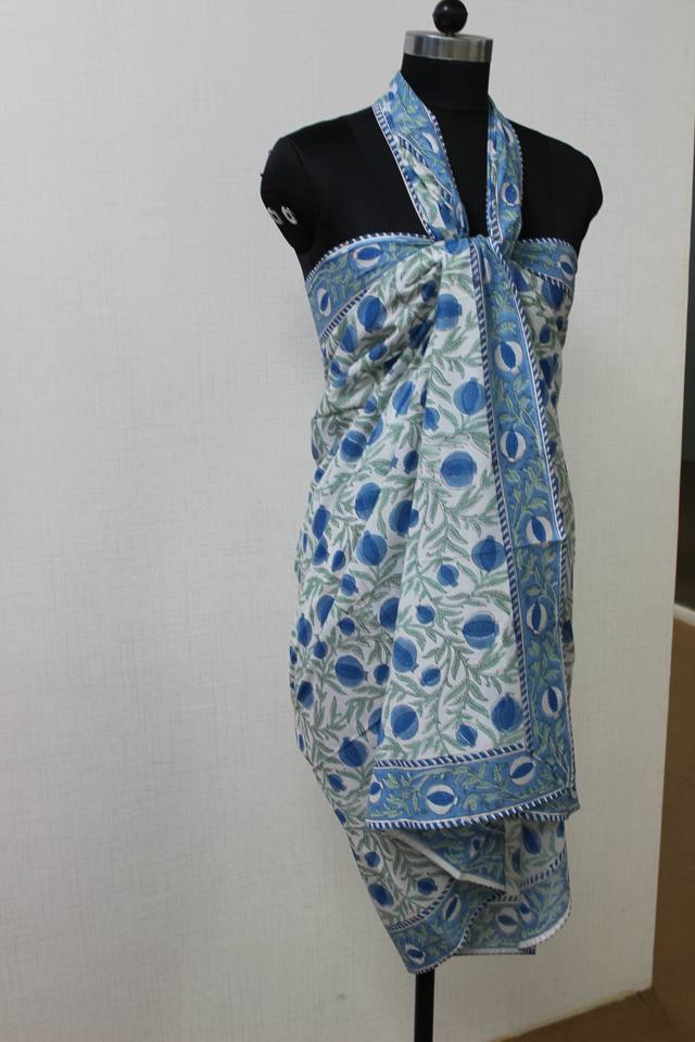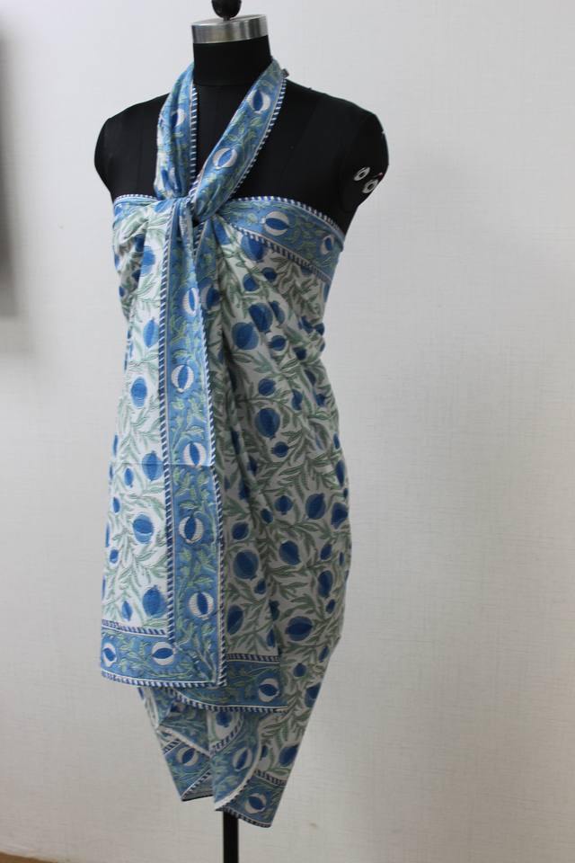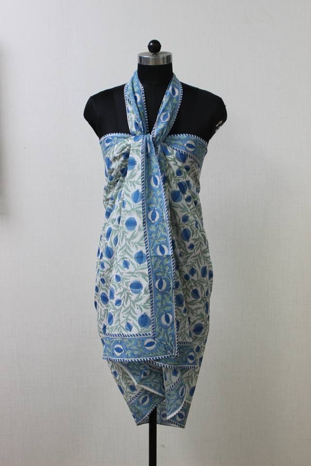 ผ้าโสร่งผ้าฝ้ายเนื้อนุ่ม/ผ้าร่มสีน้ำเงินประดับหินสีเขียวลายดอกไม้อินเดียของขวัญสำหรับแม่เพื่อนเพื่อนเจ้าสาวชุดชายหาดสำหรับผู้หญิง
