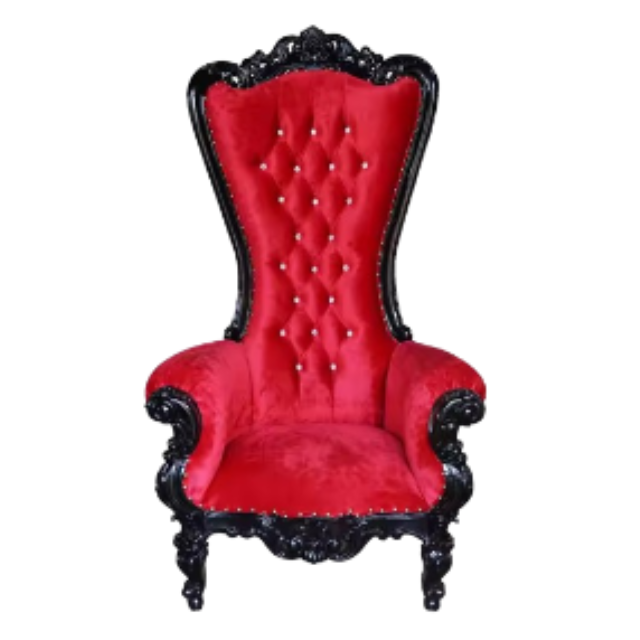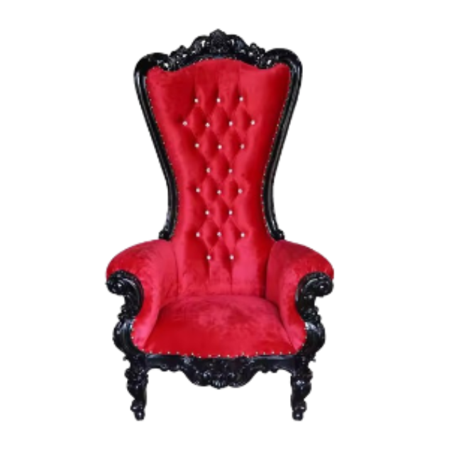 เก้าอี้บัลลังก์ราชินีพร้อมสีแดงและสีดำเก้าอี้จัดงานแต่งงานสไตล์โบราณสำหรับจัดงานแต่งงานที่บ้านและเฟอร์นิเจอร์จัดเลี้ยง