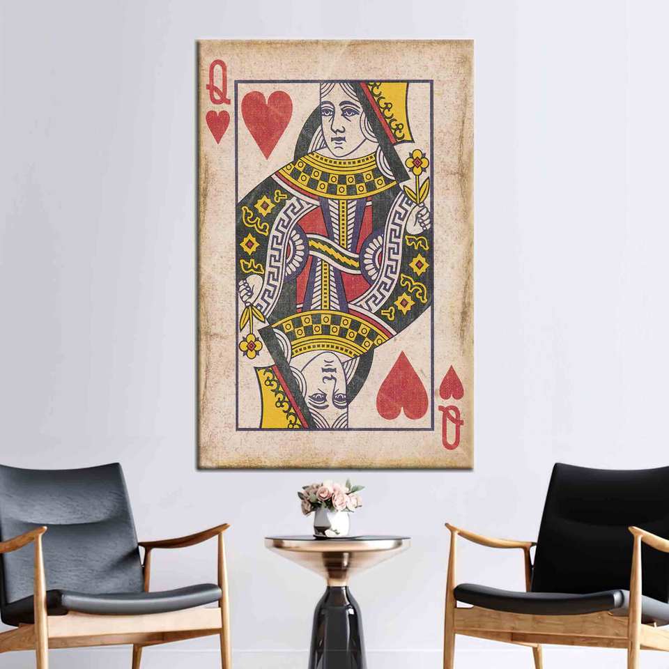ผ้าใบพิมพ์ลายไพ่ควีนออฟฮาร์ทส์ - ของตกแต่งผนังแบบนามธรรมสมัยใหม่ ห่อหุ้มอย่างดี