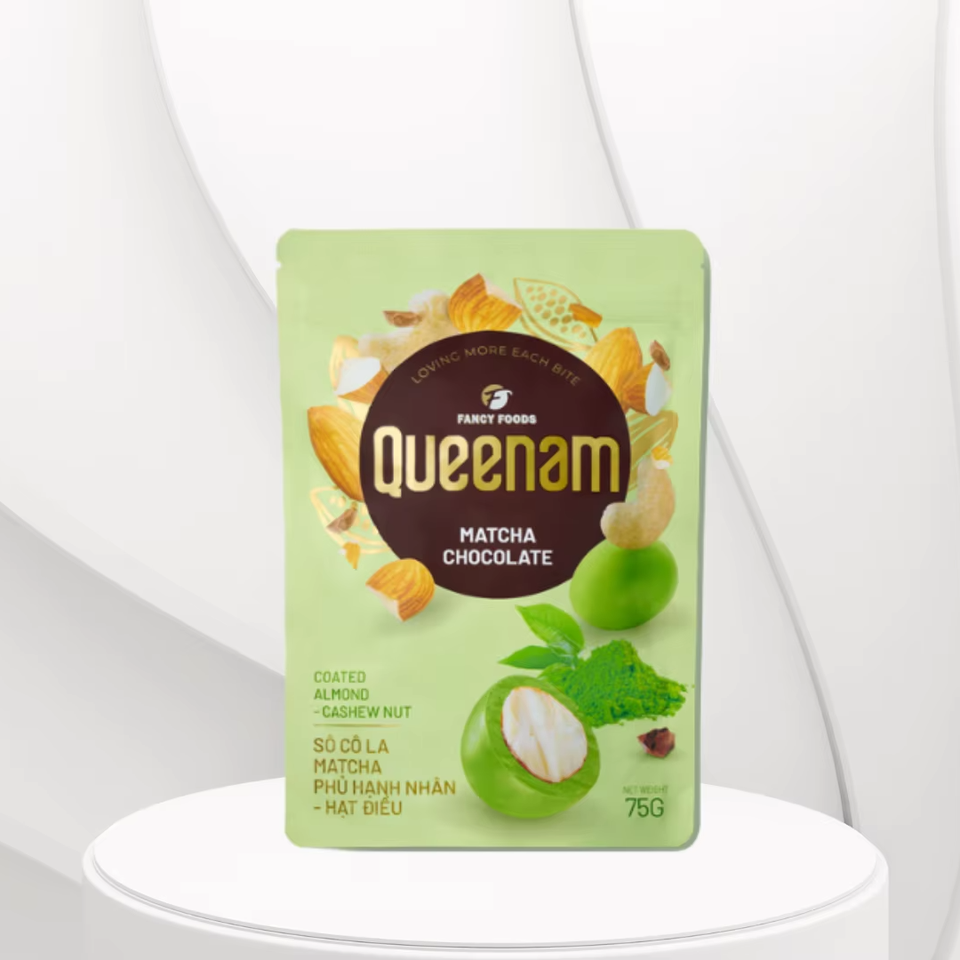 Queenam dragee 75g มัทฉะเคลือบช็อคโกแลตขนมเม็ดมะม่วงหิมพานต์อัลมอนด์ฮาลาลขายส่งราคาดี