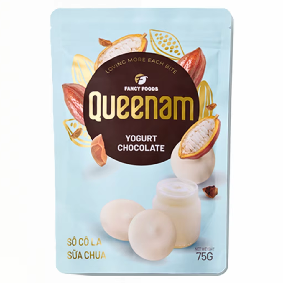 ควีนัม รับผลิตแบบ OEM/ODM ช็อกโกแลตขาวแท้จากเวียดนาม ฮาลาล 75 กรัม ช็อกโกแลตโยเกิร์ตแบบเม็ด ขนมหวาน บรรจุภัณฑ์ตามสั่ง