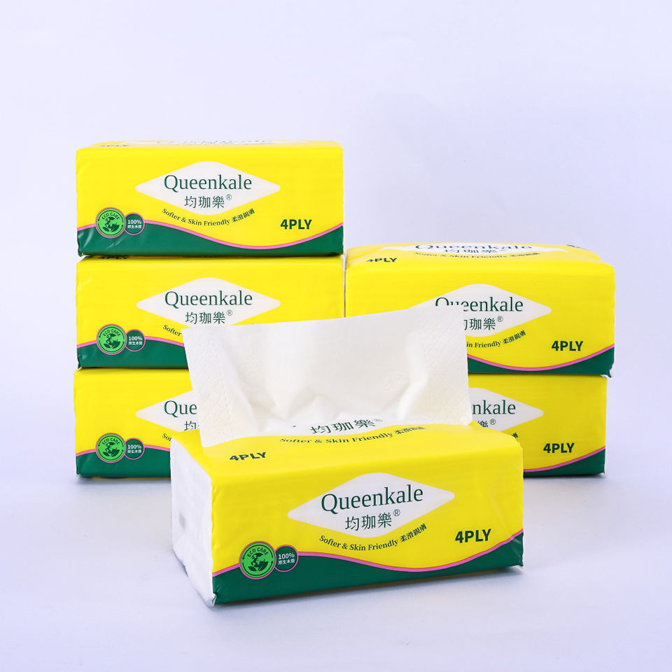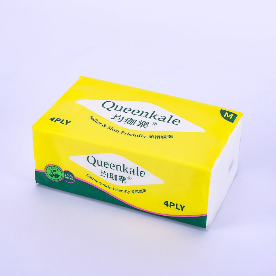 กระดาษเช็ดหน้าควีนคาเล่ เจนเทิล สำหรับดูแลผิว 4 ชั้น ผลิตจากเยื่อไม้บริสุทธิ์ บรรจุแบบนุ่ม สำหรับใช้ในสำนักงานและโรงแรม