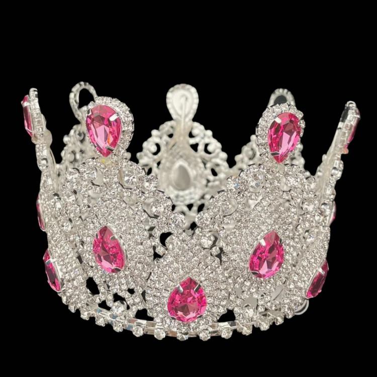 มงกุฎทรงกลมคริสตัลพลอยเทียมสีชมพูสำหรับการประกวดเจ้าหญิงมงกุฏสำหรับงานเลี้ยงครอบฟัน