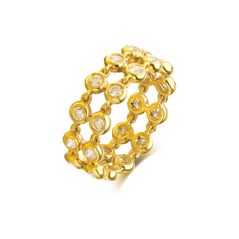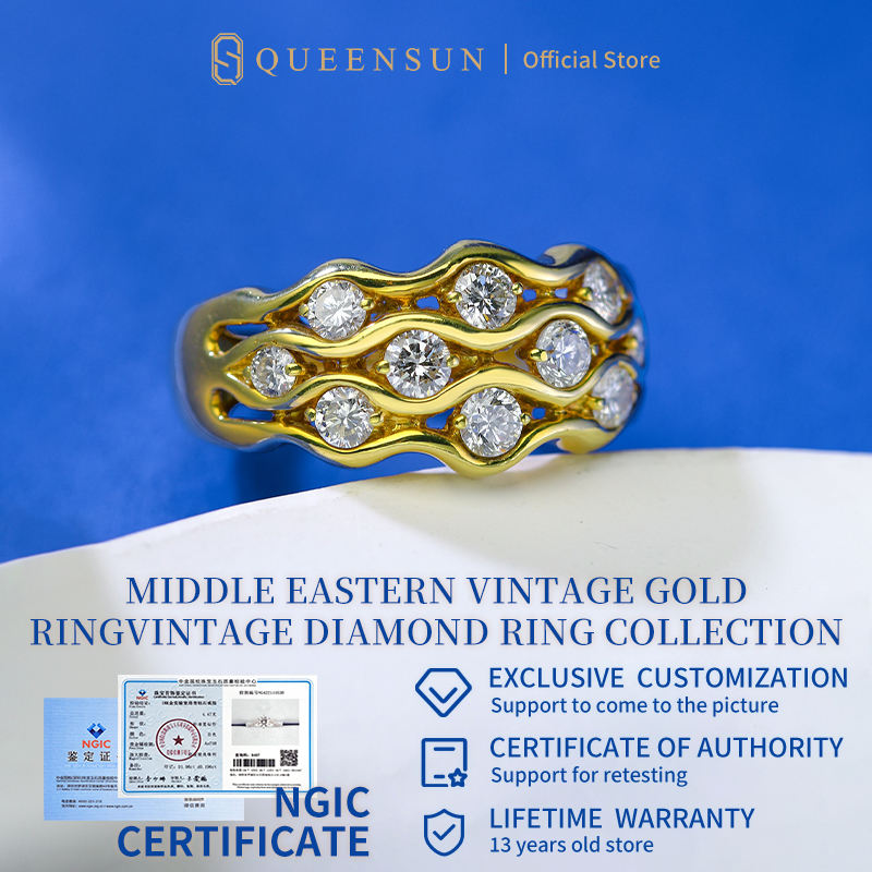 Queensun แหวนเพชร60จุดสีทอง18K วินเทจได้รับการรับรอง IGI 10g พับสไตล์ศาลฝรั่งเศส