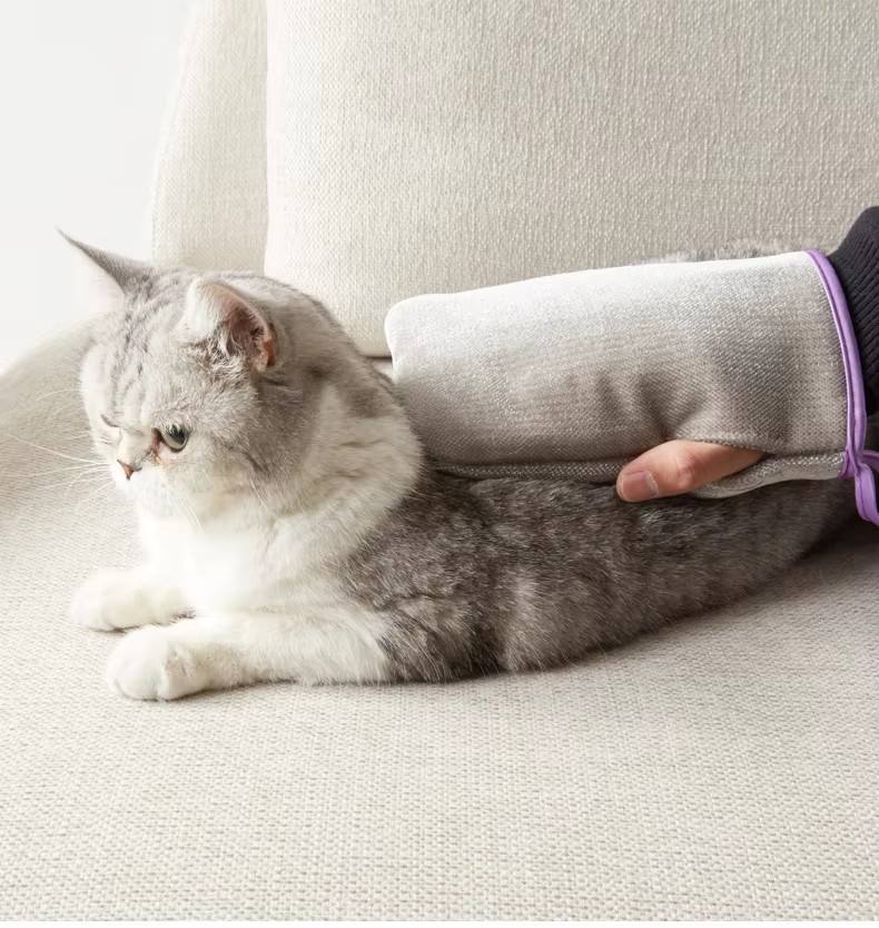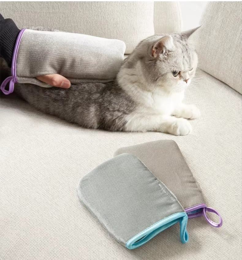 ถุงมือกำจัดขนสัตว์เลี้ยงแบบทำความสะอาดเร็ว สำหรับกำจัดขนแมวบนโซฟา ผ้าปูที่นอน และพรม รุ่นอัพเกรด