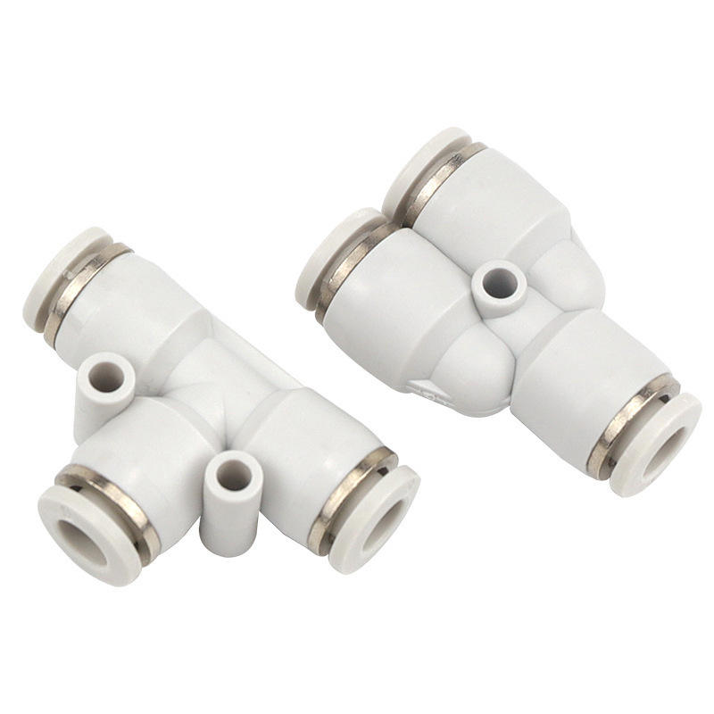 ข้อต่อแบบเชื่อมต่อเร็วสำหรับท่อพลาสติกขนาด 8 มม. รูปตัว T แบบ PE-4/6/8/10/12/14/16 สำหรับท่อลม PU ของกระบอกลมและผลิตภัณฑ์ท่อ