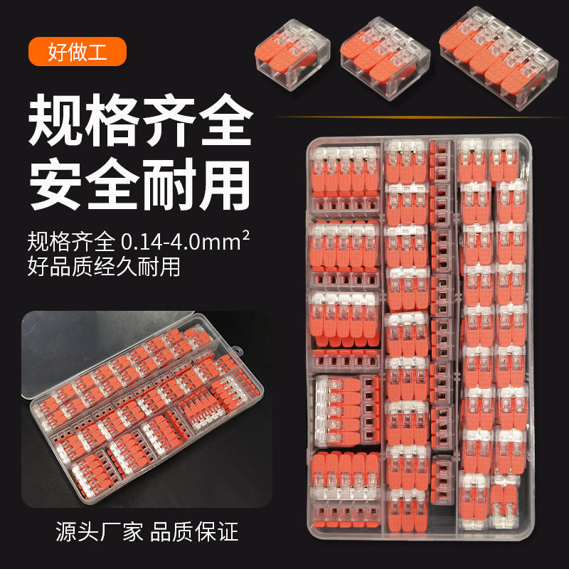 ขั้วต่อสายไฟแบบเร็ว 0.14-4.0 มม. สำหรับไฟ LED แบบเส้น วัสดุทนไฟ PC บรรจุ 80 กล่อง