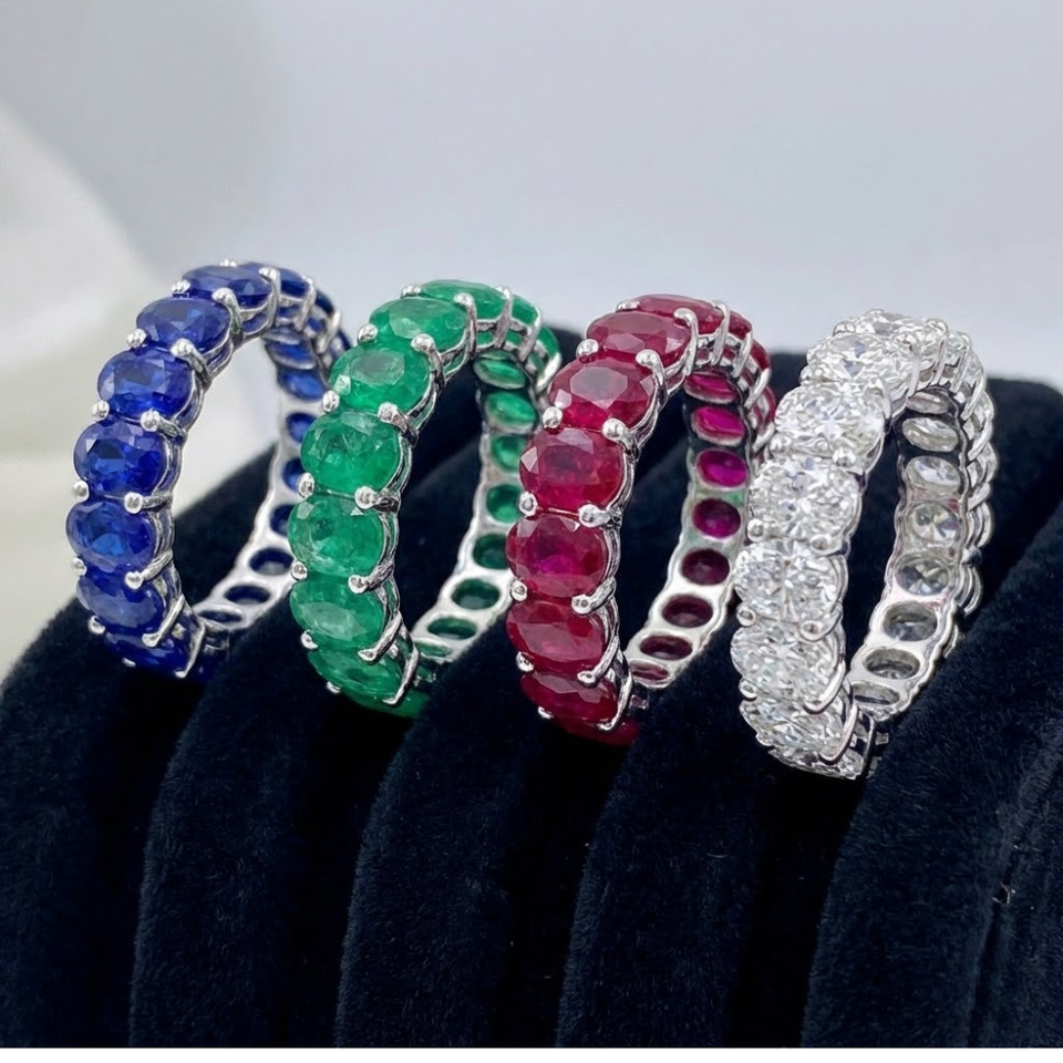 จัดส่งรวดเร็วเครื่องประดับดีไซน์พิเศษไฮเอนด์ทองคำขาวทองคำขาวทองคำขาวอินเดียแหวนไพลินทรงรีเต็มวงแหวนสำหรับสุภาพสตรี