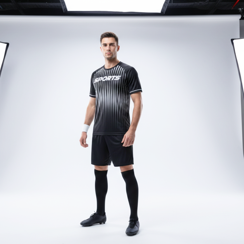 เสื้อฟุตบอลแขนสั้นแบบแห้งเร็ว ลายขาวดำ สำหรับทีมมืออาชีพ พิมพ์ลายแบบ Sublimation