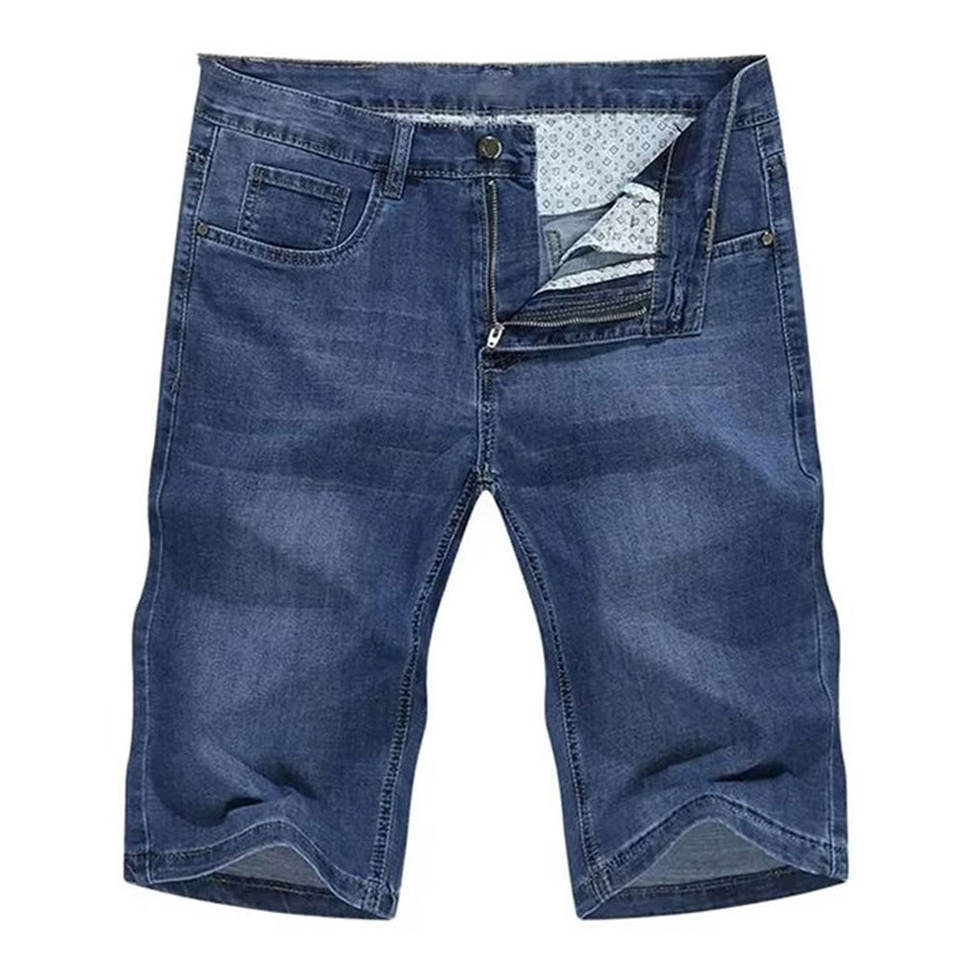 กางเกงยีนส์ขาสั้นผู้ชายทรงตรงเอวกลาง ผ้าเดนิมแห้งเร็ว ระบายอากาศดี เหมาะสำหรับฤดูร้อน สวมใส่สบาย มีซิป เป็นมิตรกับสิ่งแวดล้อม คุณภาพสูง