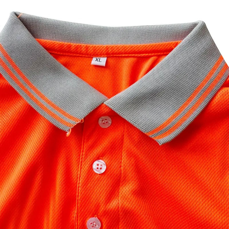 เสื้อโปโลผู้ชายผ้าโพลีเอสเตอร์แห้งเร็ว ระบายอากาศดี มองเห็นได้ชัด กันน้ำ ป้องกันแบคทีเรีย ออกแบบโลโก้ได้ตามต้องการ พร้อมแถบสะท้อนแสงเพื่อความปลอดภัย