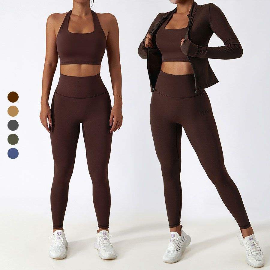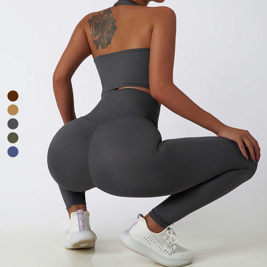 ชุดฟิตเนสสำหรับผู้หญิงชุดเล่นโยคะรัดรูปบั้นท้ายแห้งเร็วน้ำหนักเบาสีพื้น