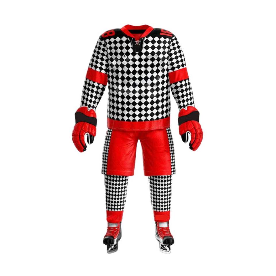 ชุดฝึกซ้อมเสื้อเจอร์ซีย์แห้งเร็วระบายอากาศได้ดีชุดเล่นกีฬาฮ็อกกี้น้ำแข็งผ้ายืดปรับแต่งโลโก้ได้ตามต้องการ